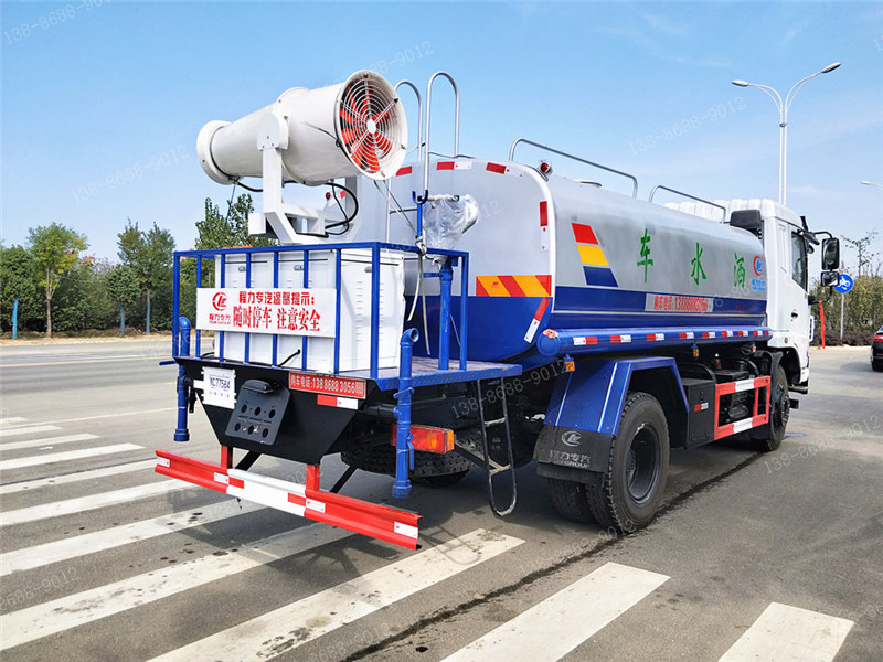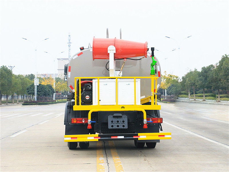 上裝配置:罐體采用國標Q235碳鋼板制作,可選用30米、40米50米中型霧炮,罐體采用機器壓板一次性成型技術,采用先進旋邊機,罐體包罐機工藝保證了罐體制作的精度和美觀。罐體厚度4mm,前后封頭5MM加厚型,罐體實際容積約12立方(12噸),程力獨有烤漆工藝,多層底漆、防腐除銹,面漆噴涂。 功能齊全,配備前沖、后灑、側噴、綠化灑水炮,采用優質水泵,合理設計水路管道,氣控取力器,作業能力強;采用柴油發電機大功率霧炮機,噴灑距離選裝30-50米射程,運用范圍廣泛。